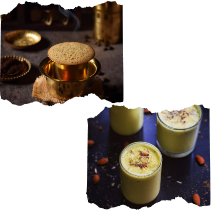 Indian milk beverage flavored with ground almonds, cardamom & saffron and served with hot cup