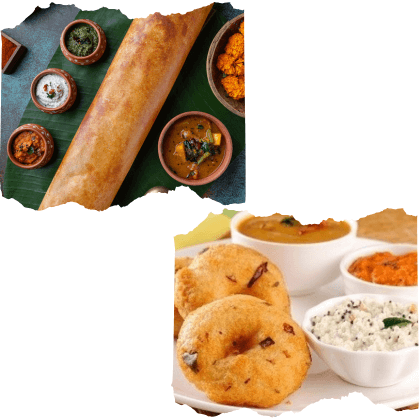 Welcome drink (Masala Chaas) / Dal Makani / 2 Starters / Kurma / Shahi Gravy / Rasam / Sambar / Curd /1 Biryani / 1 Flavored Rice / 1 White Rice / 2 desserts / Pickle / Papad / Podi / Poori & Naan / Raita / Salan / Salad