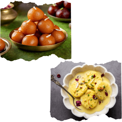 Made with milk solids and soaked in sweetened milk rabdi